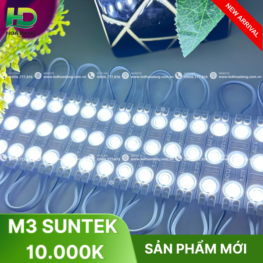 Với dải ánh sáng trắng 10.000K, LED M3 Suntek mang đến màu sắc trung thực, rõ nét, giúp biển quảng cáo và bảng hiệu trở nên bắt mắt, chuyên nghiệp hơn bao giờ hết. Ngoài ra, thấu kính tản sáng nano giúp ánh sáng lan tỏa mịn và giảm chói lóa, tạo cảm giác dễ chịu cho mắt và nâng cao trải nghiệm thị giác.
