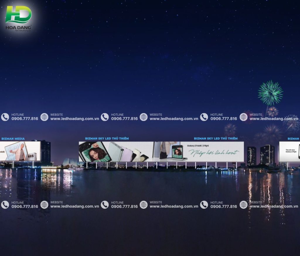 Sky LED Thủ Thiêm hiện là tổ hợp màn hình LED ngoài trời lớn bậc nhất Đông Nam Á. Điểm đặc biệt về mặt kỹ thuật của công trình này là sử dụng công nghệ LED Mesh (LED lưới) hoặc LED cabinet chuyên dụng cho tầm nhìn xa. Thiết kế này giúp giảm tải trọng gió cho hệ khung khổng lồ, đồng thời đảm bảo độ sáng cực cao để có thể nhìn rõ từ khoảng cách hàng km bên kia sông. Đây được xem là “biểu tượng thị giác” mới của TP.HCM, biến khu vực Bến Bạch Đằng thành một “bến Thượng Hải” thu nhỏ về đêm.